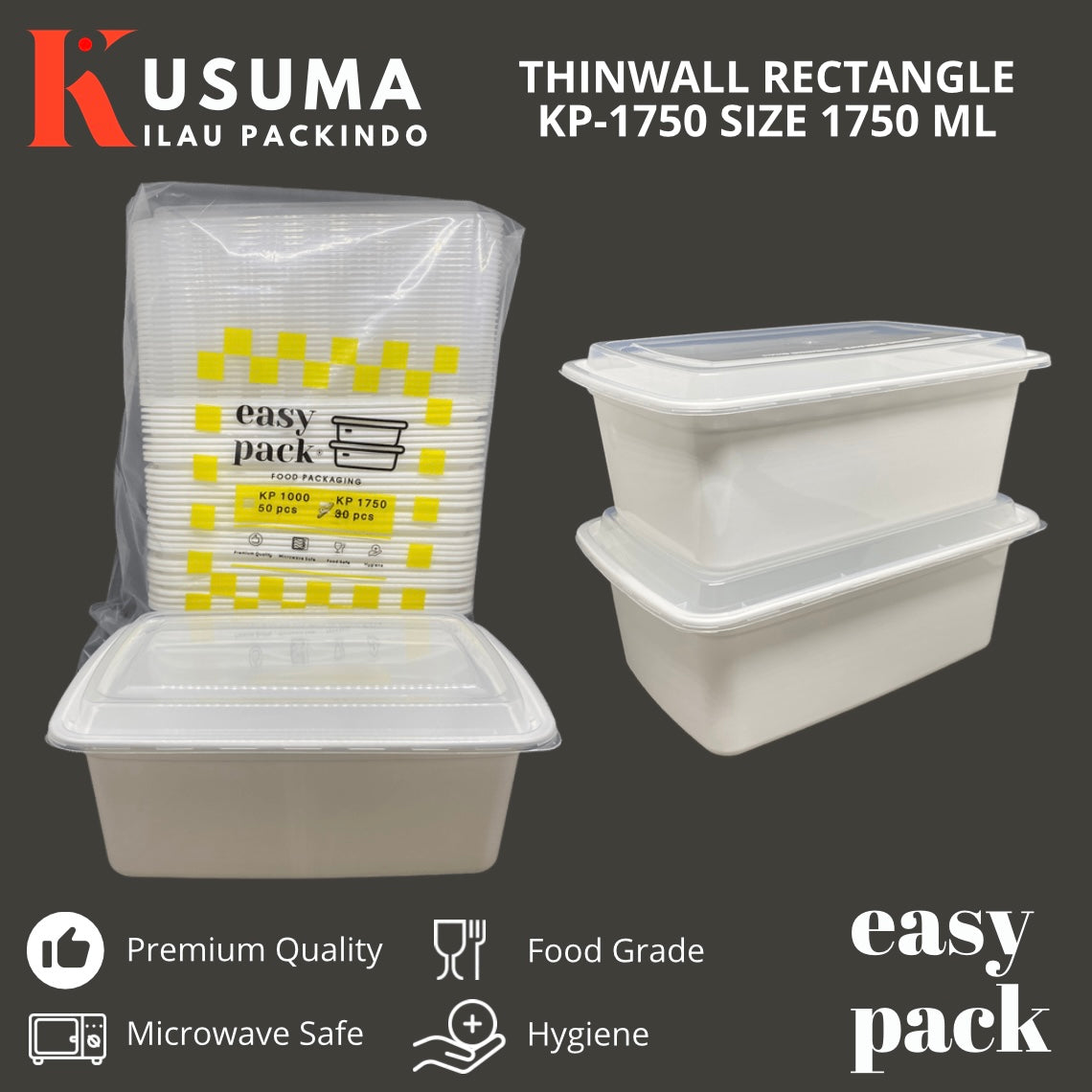 EASY PACK THINWALL RECTANGLE KP-1750 PUTIH SUSU 1750 ML